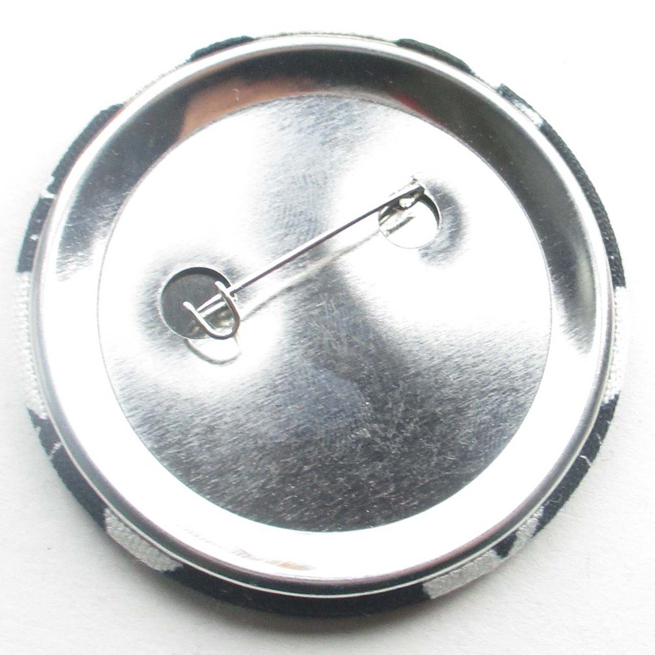 カットクロスを活用して仕上げた約58mmのオリジナル缶バッチです。
