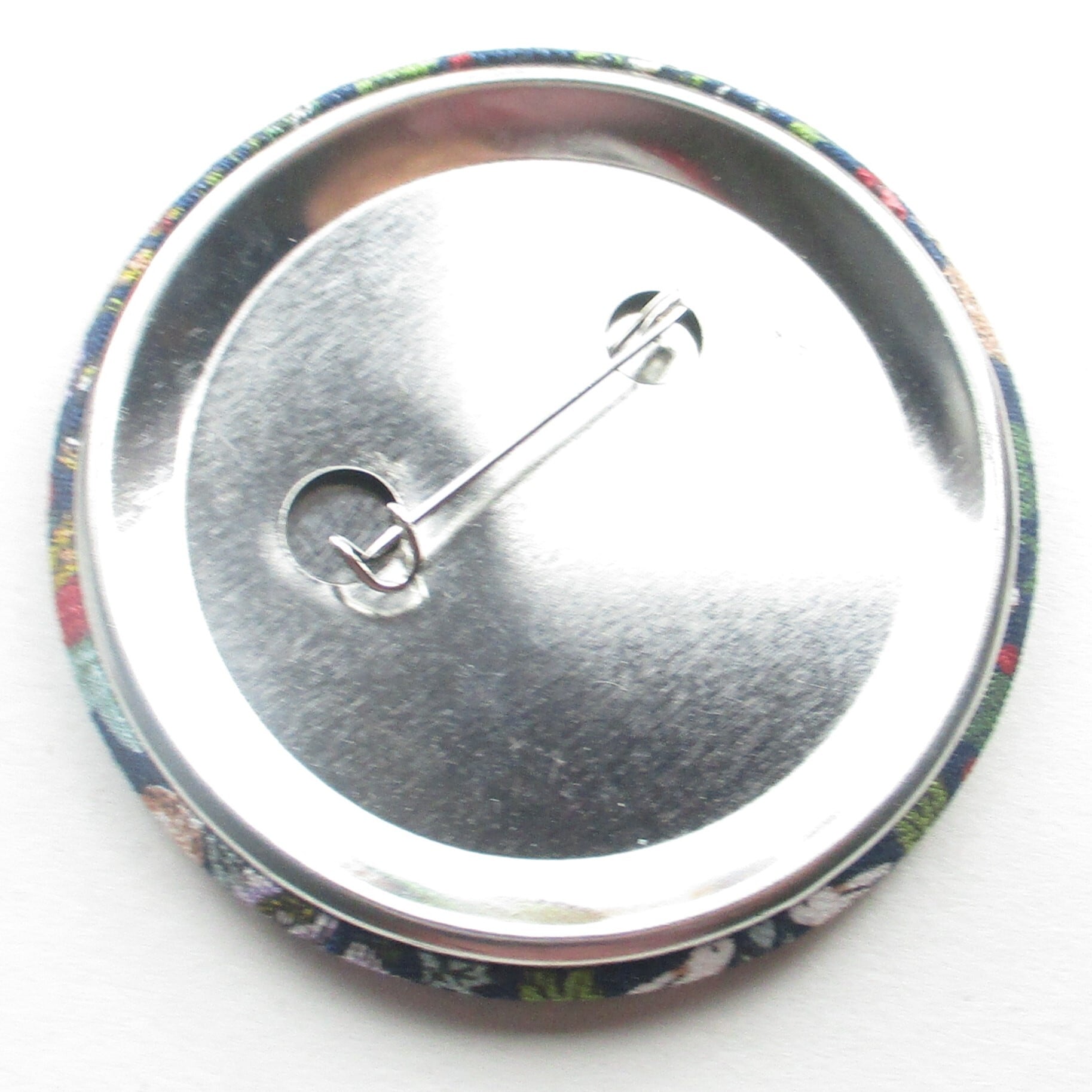 カットクロスを活用して仕上げた約58mmのオリジナル缶バッチです。