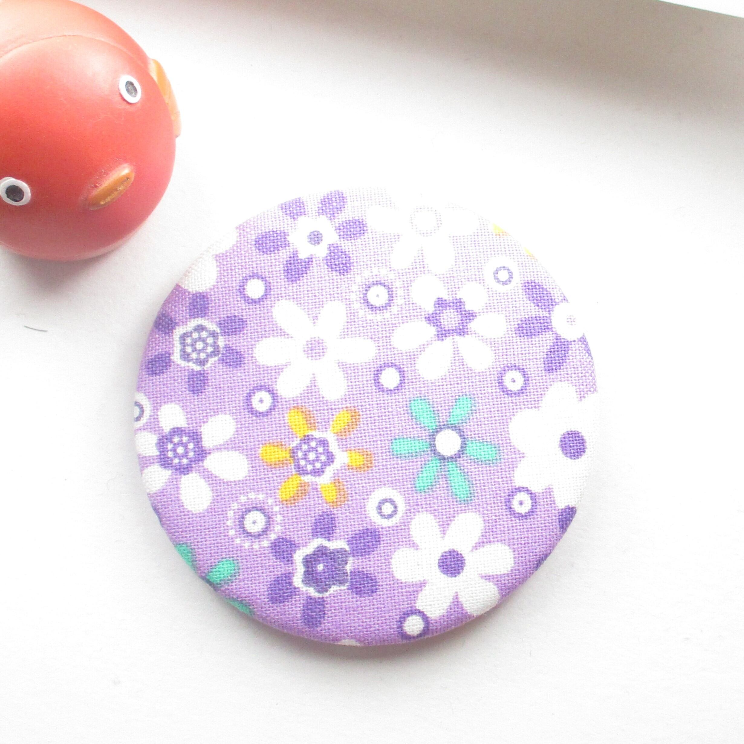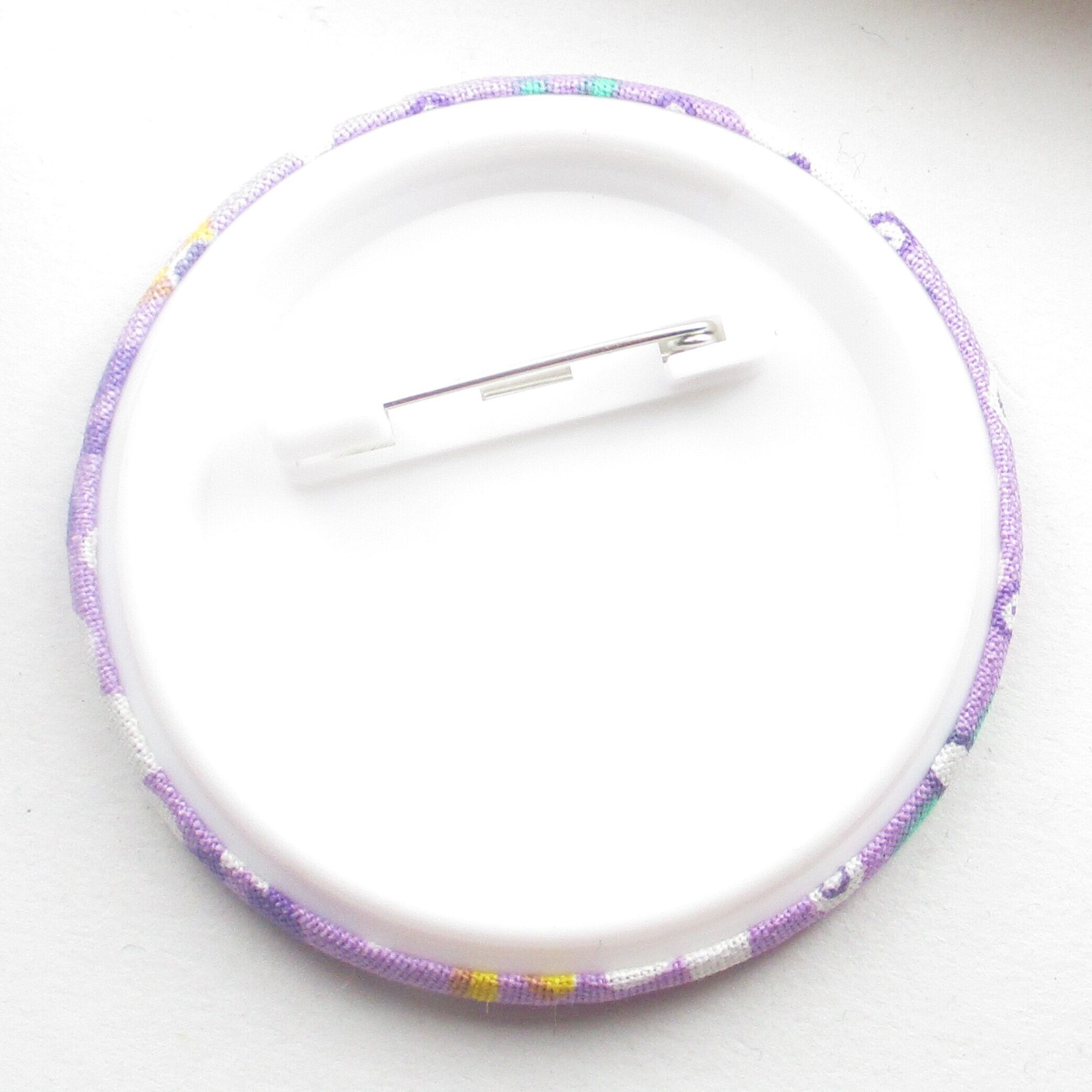 カットクロスを活用して仕上げた約58mmのオリジナル缶バッチです。