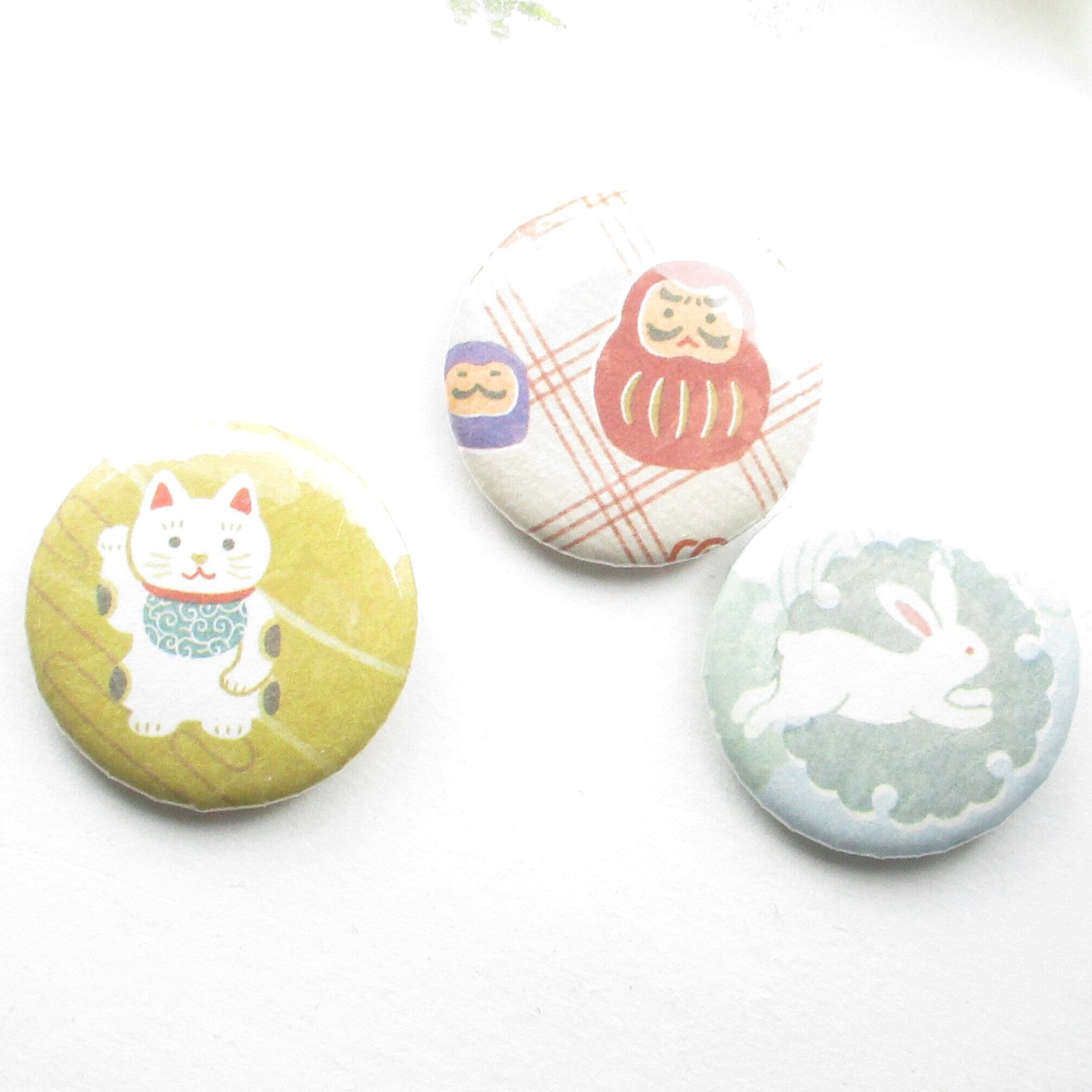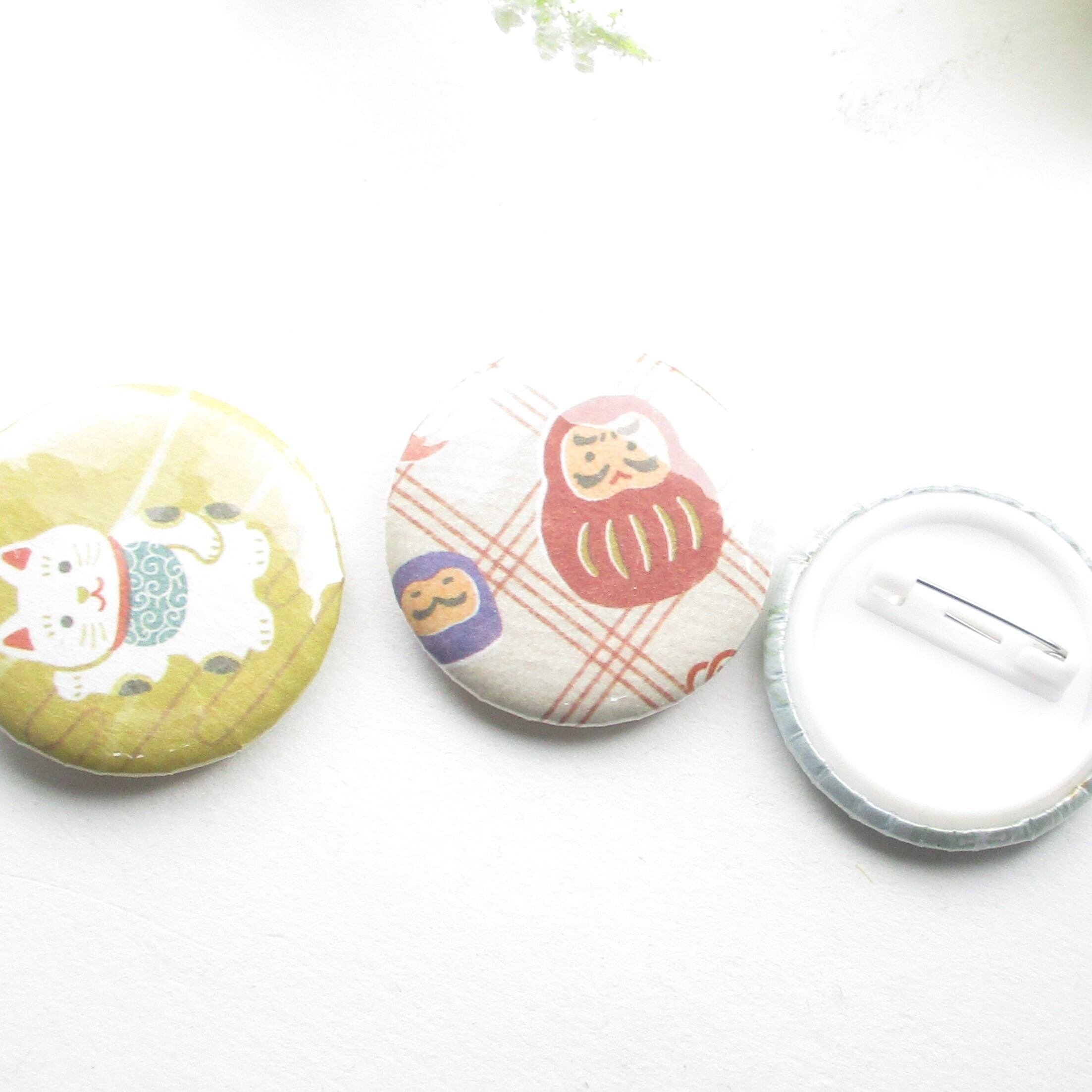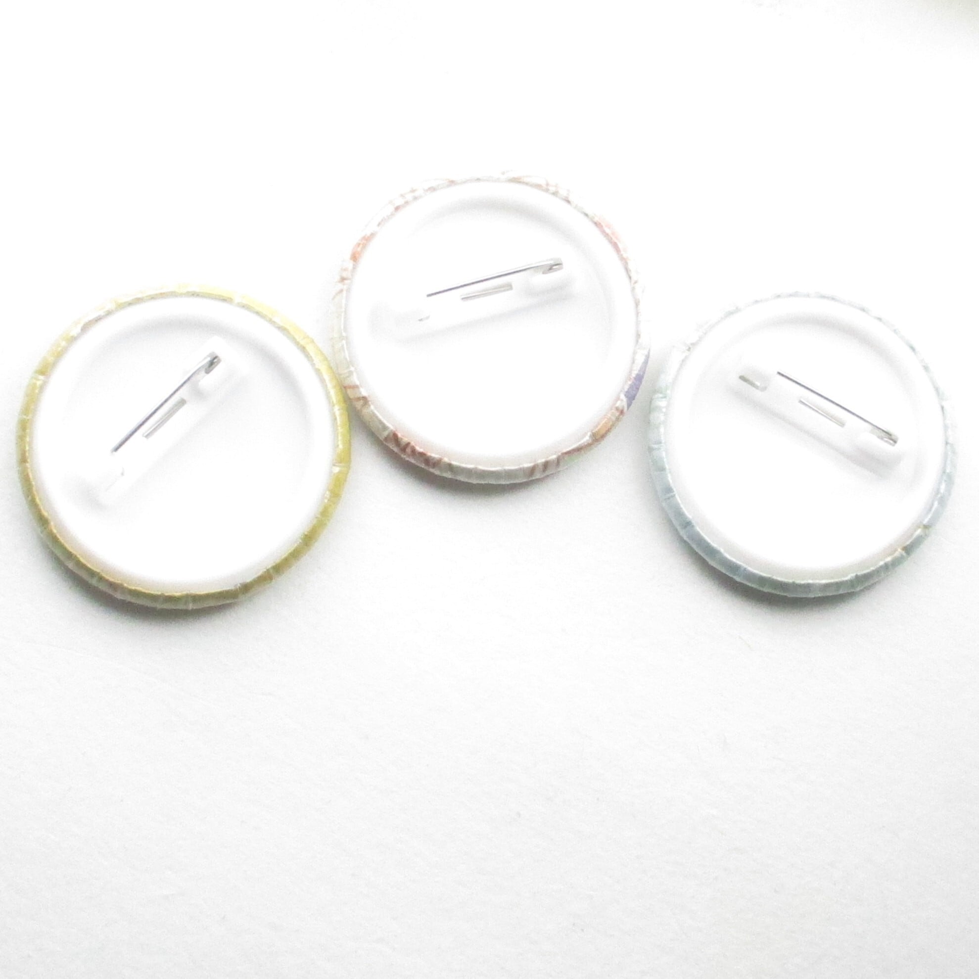 折り紙やクリアフィルムを活用して仕上げた約32mmのオリジナル缶バッチ(計3つ)です。