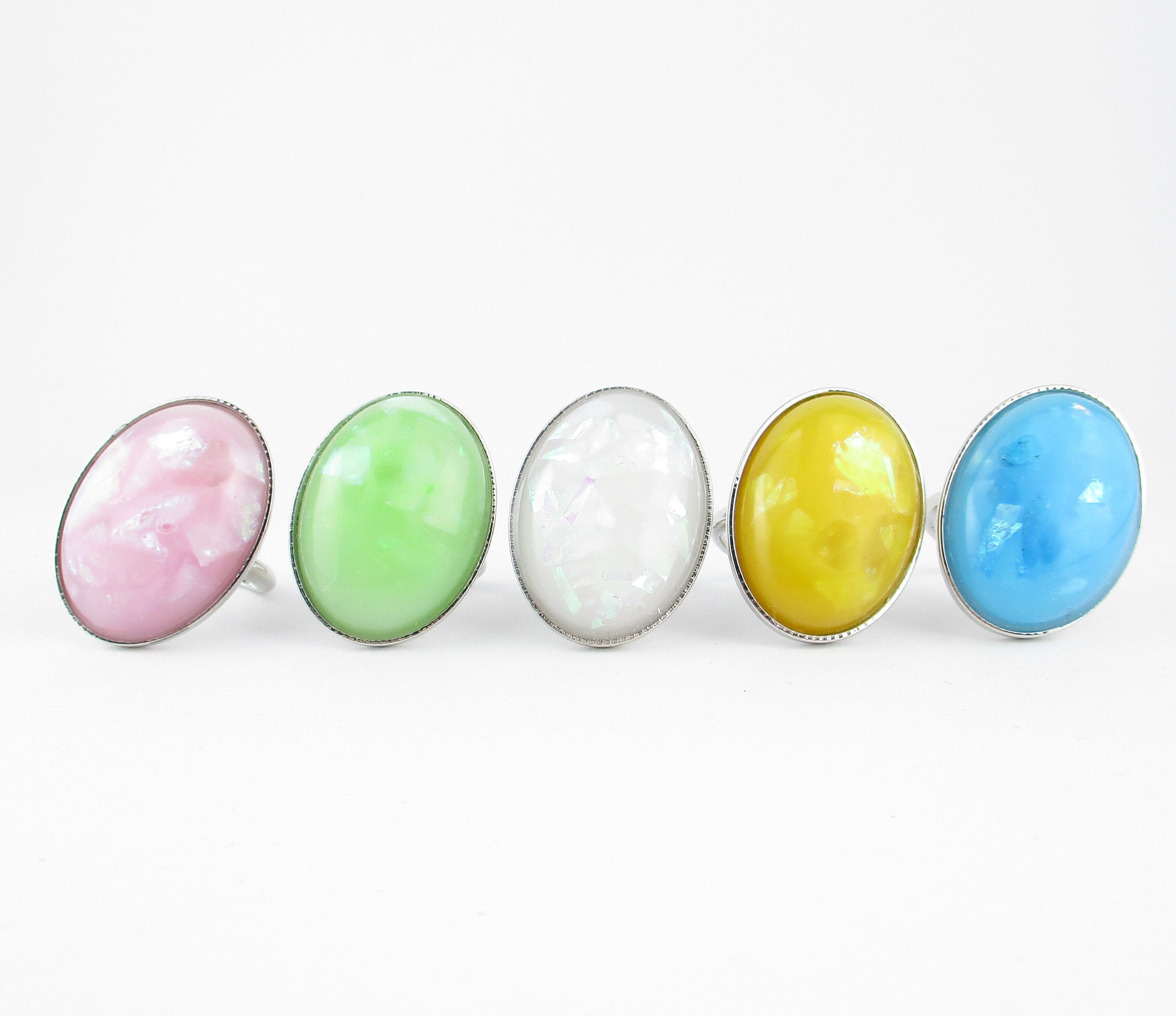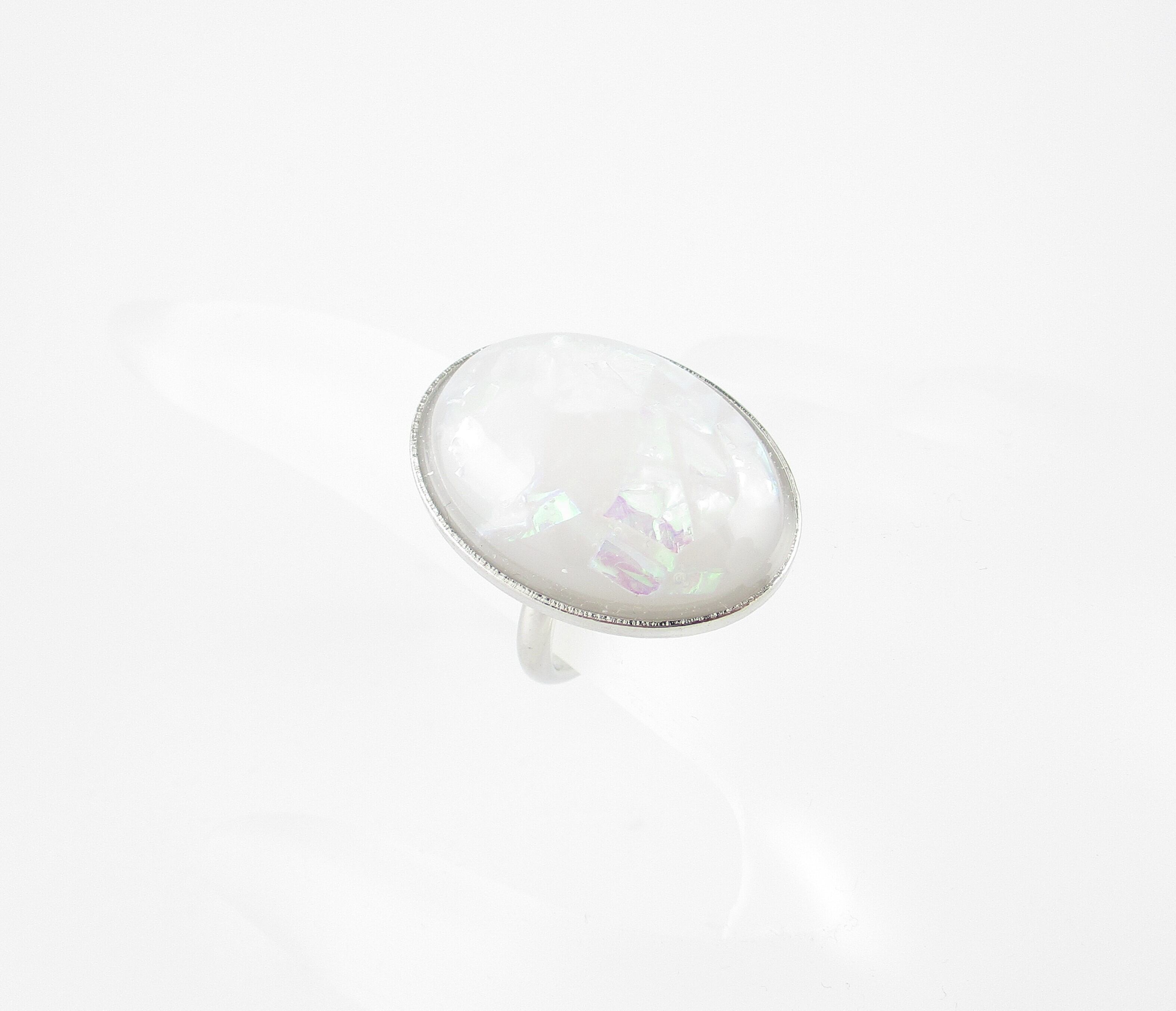 クォーツ(サザレ)を楕円形(18mm*25mm)のレジンに包み込んで仕上げたカメオっぽいリングです。