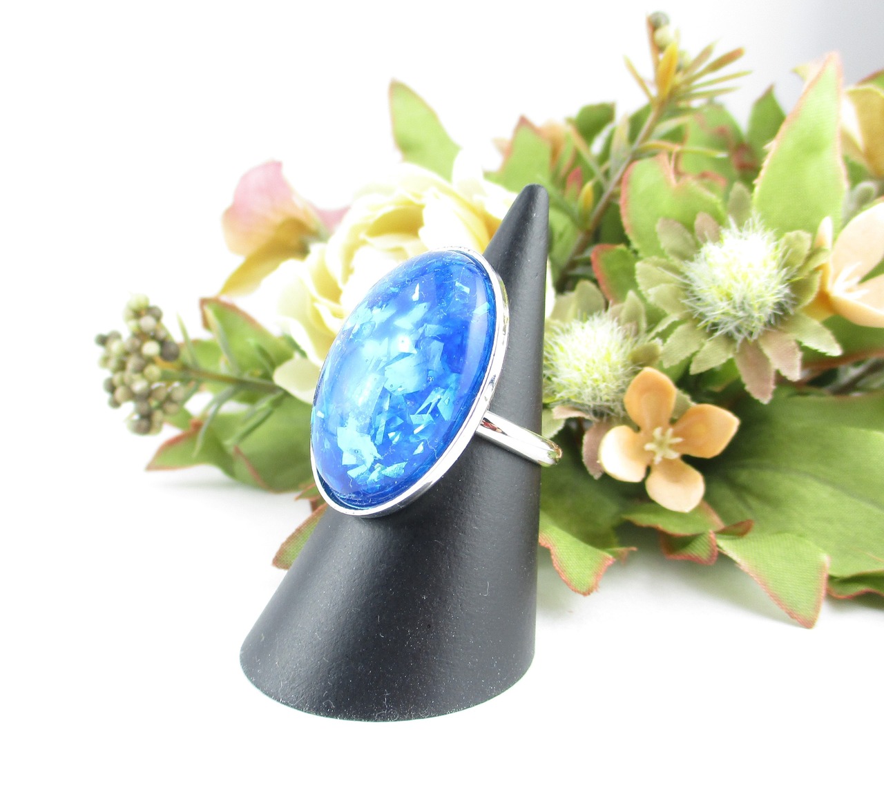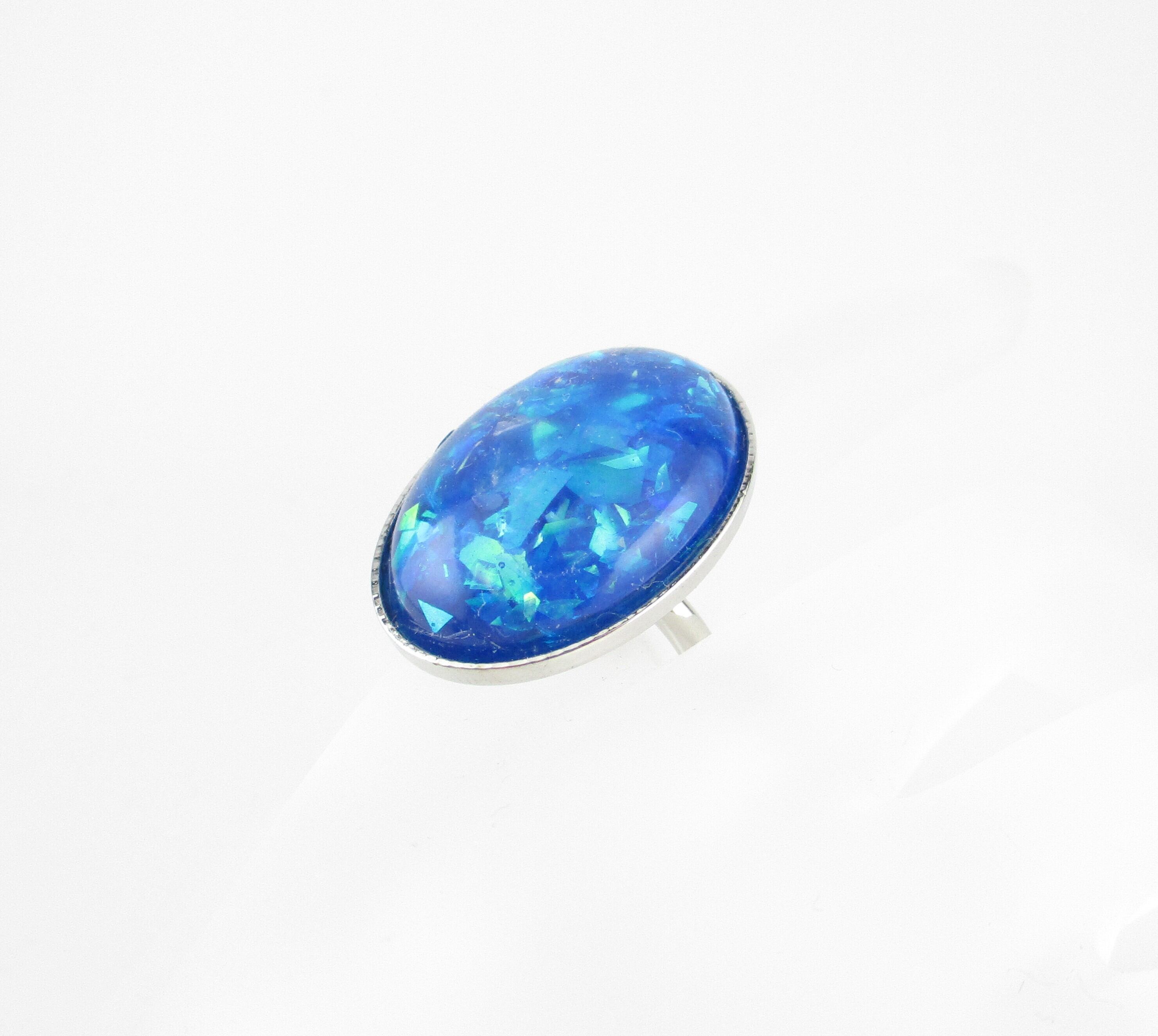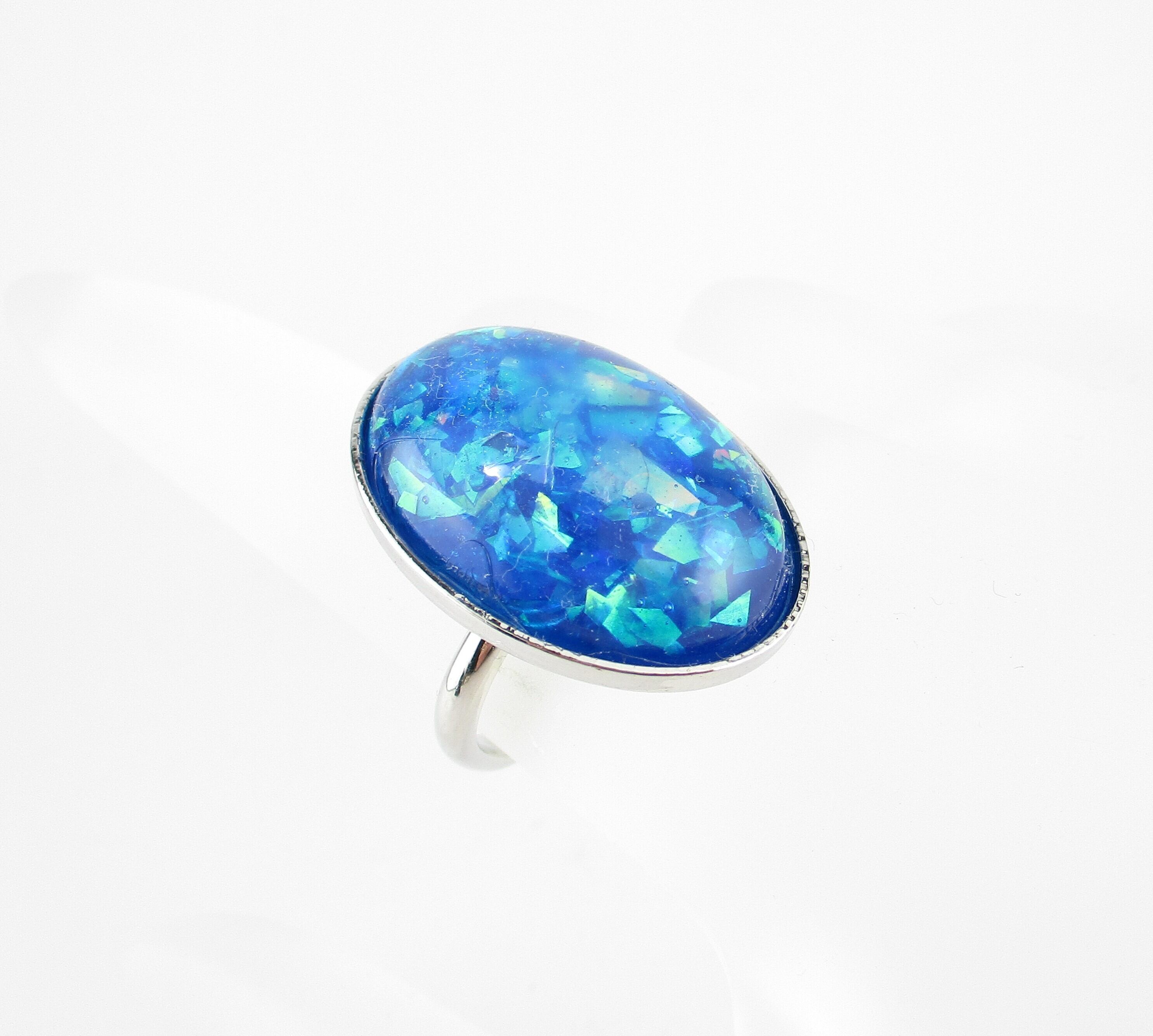 クォーツ(サザレ)を楕円形(18mm*25mm)のレジンに包み込んで仕上げたカメオっぽいリングです。
