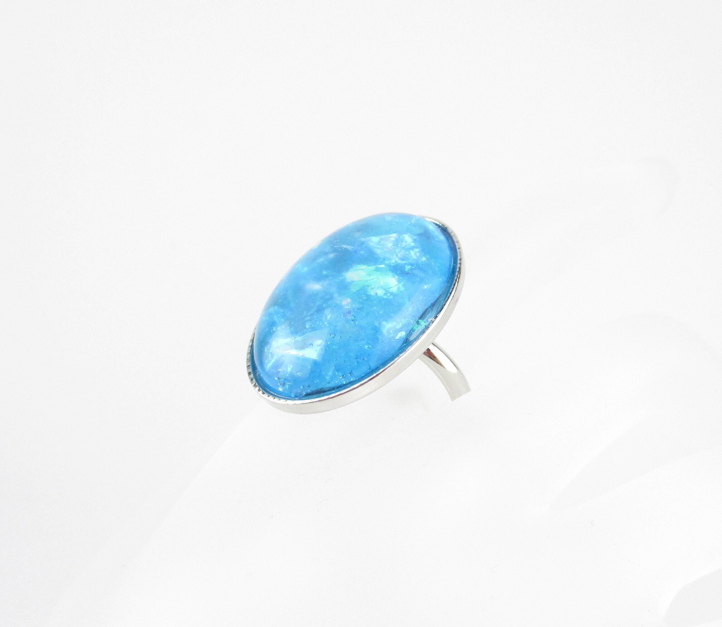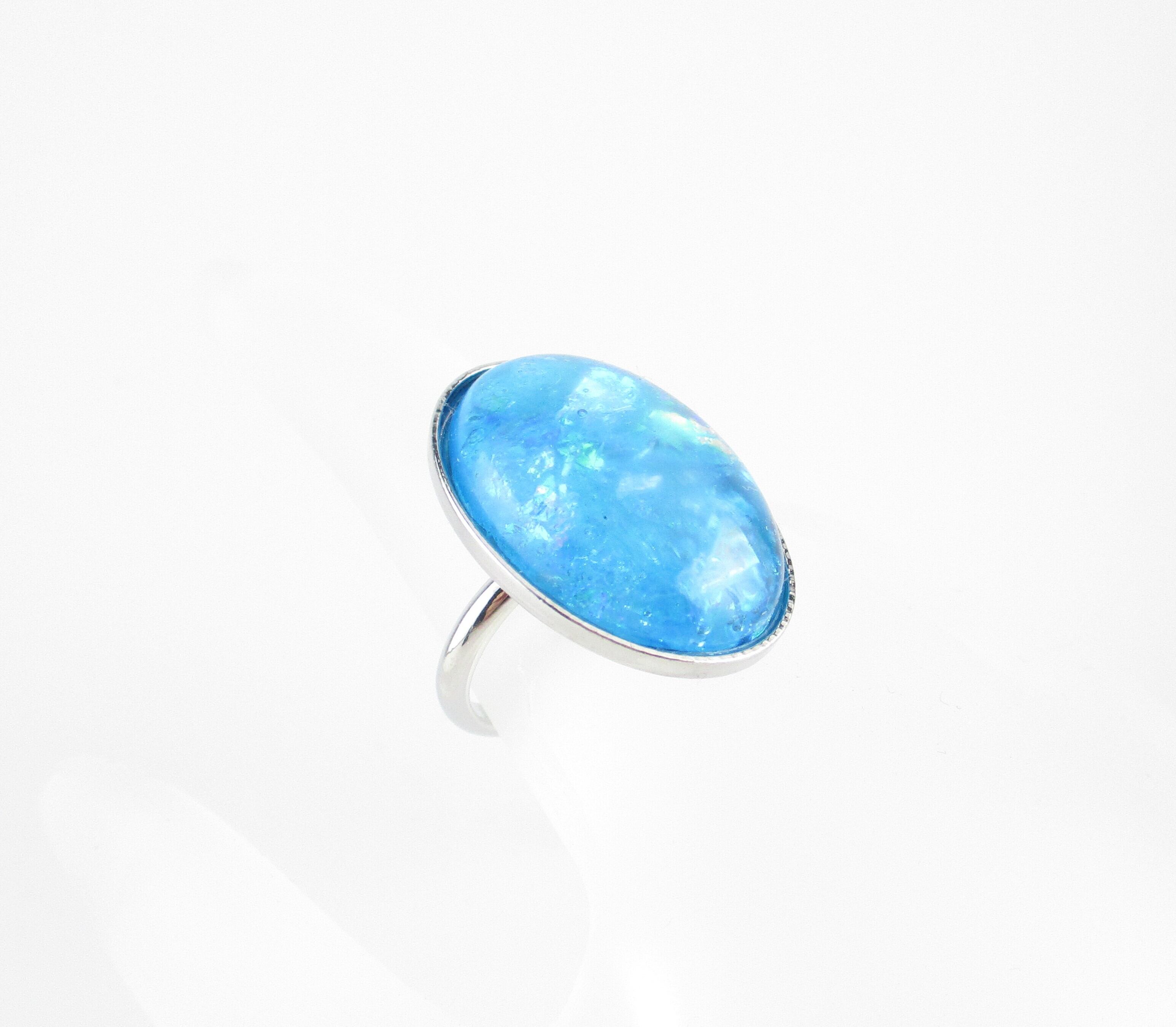 クォーツ(サザレ)を楕円形(18mm*25mm)のレジンに包み込んで仕上げたカメオっぽいリングです。