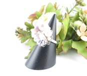 創作リングは、サイズをご自分で調整できるタイプのリングを使用しております。一番小さくて10号で、最大で15号~16号くらいまで調整できるようになっていますが、リングを広げすぎると、見栄えがあまりよろしくないので、14号くらいまでのサイズの方にお勧めしております。
