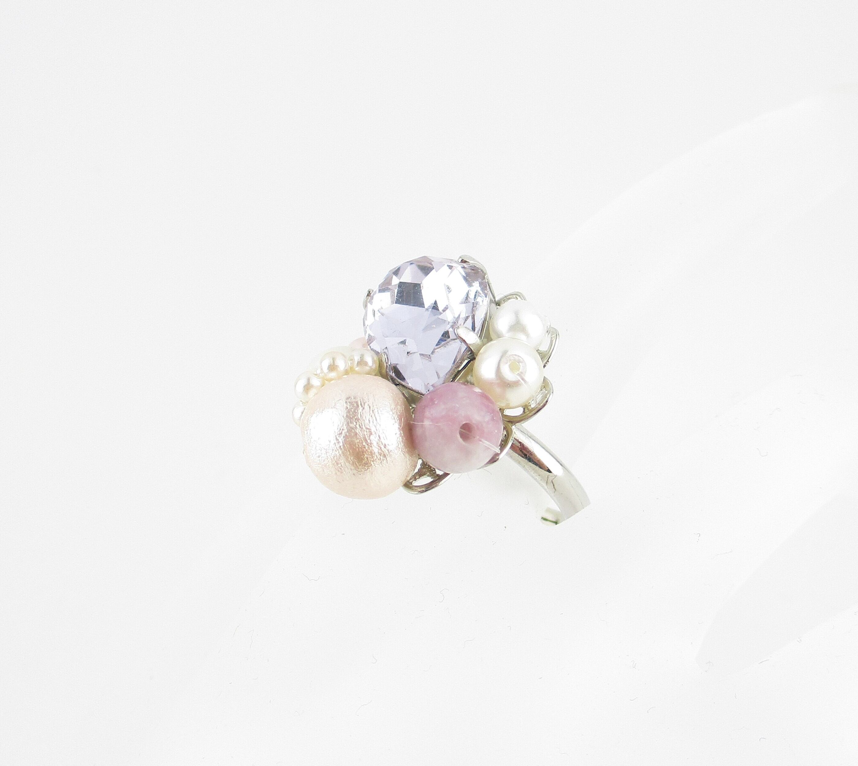 約6mm玉のレピドライトや、約14mm*10mmの爪付きガラスなどで仕上げた創作リングです。