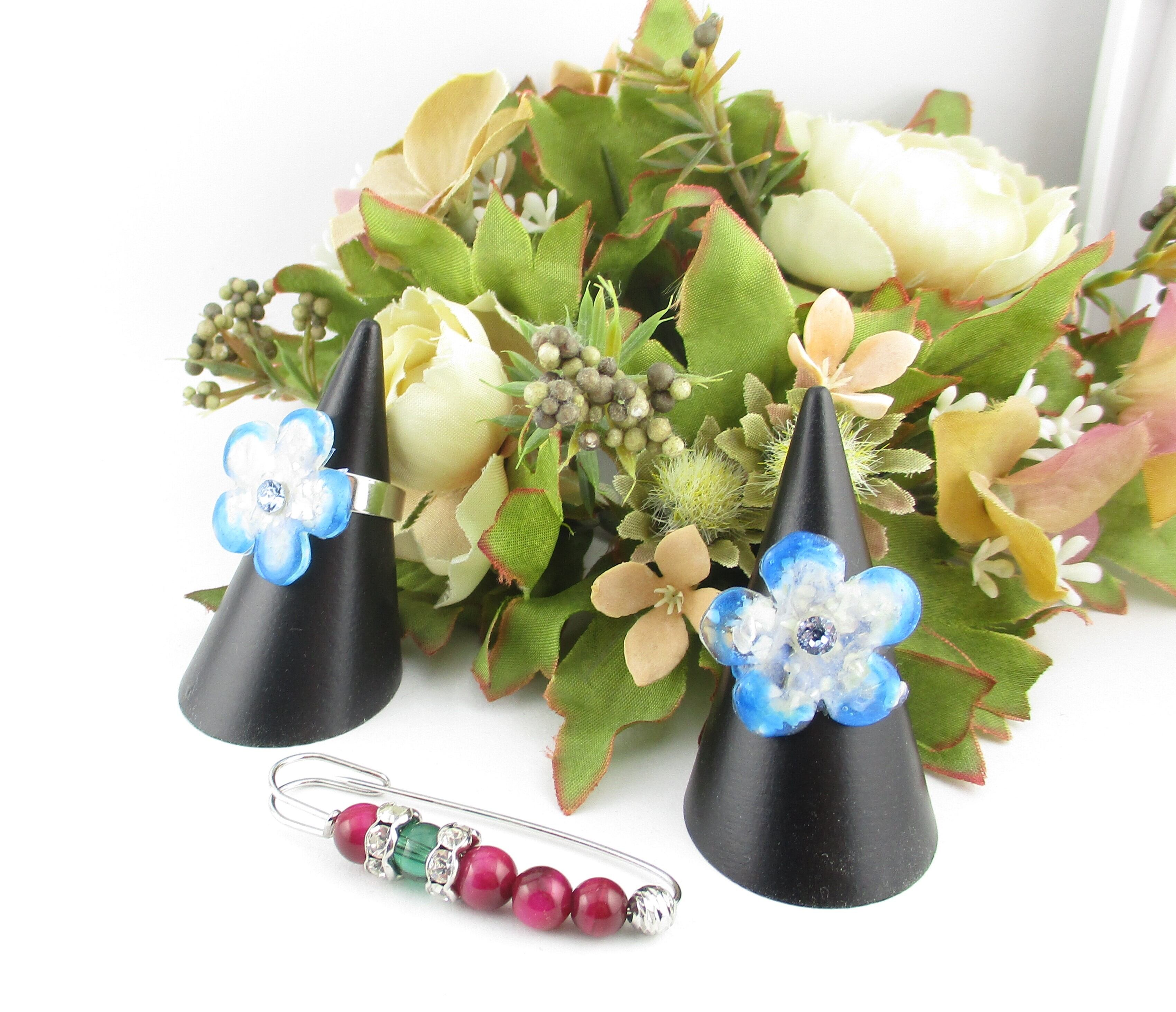 指もとを彩り豊かに演出する一点もののリングですが、カニカン等にひっかけてキーホルダーとしてバッグ等にくっつけているお客様もいらっしゃいました。用途は色々あるようです。