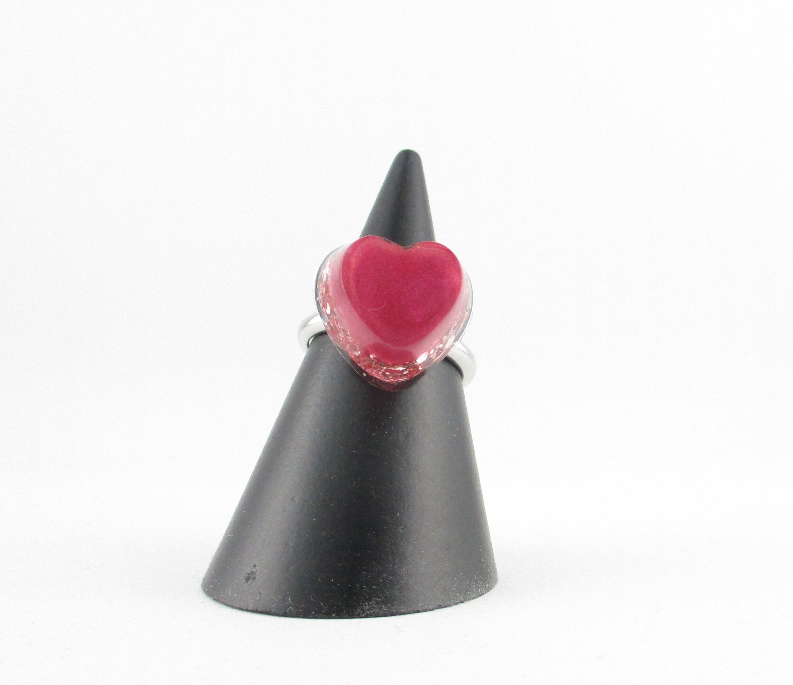 グリッターやクォーツのサザレをハート型の自家製レジンパーツに閉じ込めたシンプルな創作リングです。