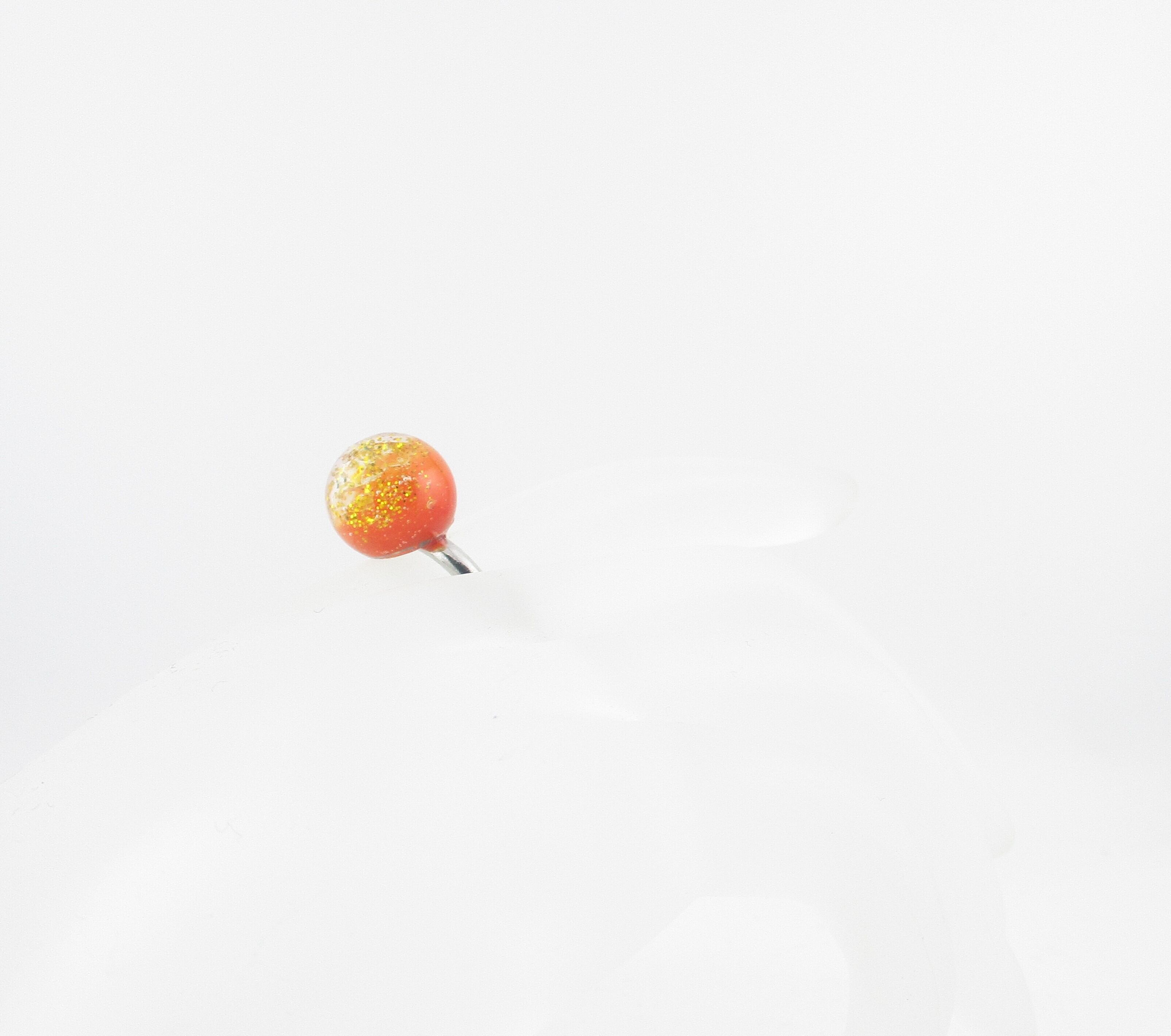 グリッターやシトリンのサザレを約12mm玉の自家製レジンパーツに閉じ込めたシンプルな創作リングです。